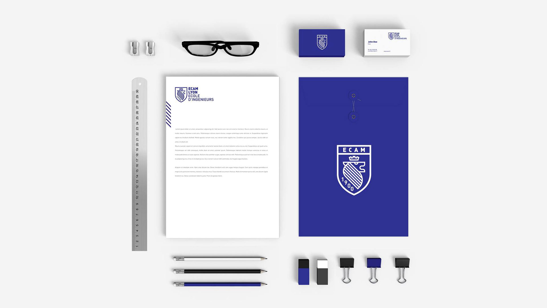Ecole d’ingénieurs créée en 1900, l’ECAM Lyon associe recherche, enseignement et innovation pour accompagner les mutations de l’industrie et de la société. Porteuse d’une tradition humaniste, l’ECAM Lyon allie dans toutes ses formations exigence scientifique et technique, envergure humaine et sociale, pluridisciplinarité et ouverture sur le monde. L'école nous a sollicité afin de repenser sa plateforme de marque et ses différents supports d'expression. Nous avons ainsi développé un langage graphique héraldique afin de mobiliser un imaginaire historique, tout en veillant à orienter nos choix vers une culture graphique contemporaine, créative, innovante.